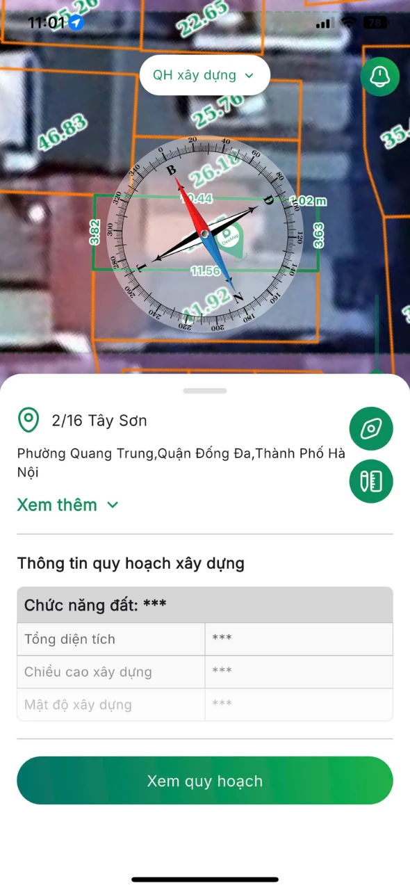 Chỉ với vài bước đơn giản, bạn có thể tra cứu thông tin quy hoạch theo địa chỉ hoặc tọa độ GPS. Hệ thống hiển thị thông tin chi tiết như: mục đích sử dụng đất, chỉ giới xây dựng, mật độ xây dựng, tầng cao được phép,…