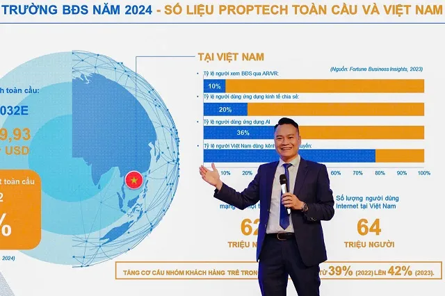 Ông Sơn dẫn chứng số liệu của Fortune Business Insights cho biết, quy mô thị trường Proptech toàn cầu năm 2024 gần 36.6 tỷ USD, dự báo đạt hơn 89.9 tỷ USD đến 2032, tương ứng mức tăng trưởng CAGR giai đoạn này là 11.9%. Tốc độ tăng trưởng cũng như dư địa tăng trưởng tại Việt Nam rất lớn. Việt Nam có khoảng 62 triệu người sử dụng mạng xã hội, 64 triệu người dùng Internet, đây là tiềm năng cho ngành proptech phát triển mạnh mẽ.